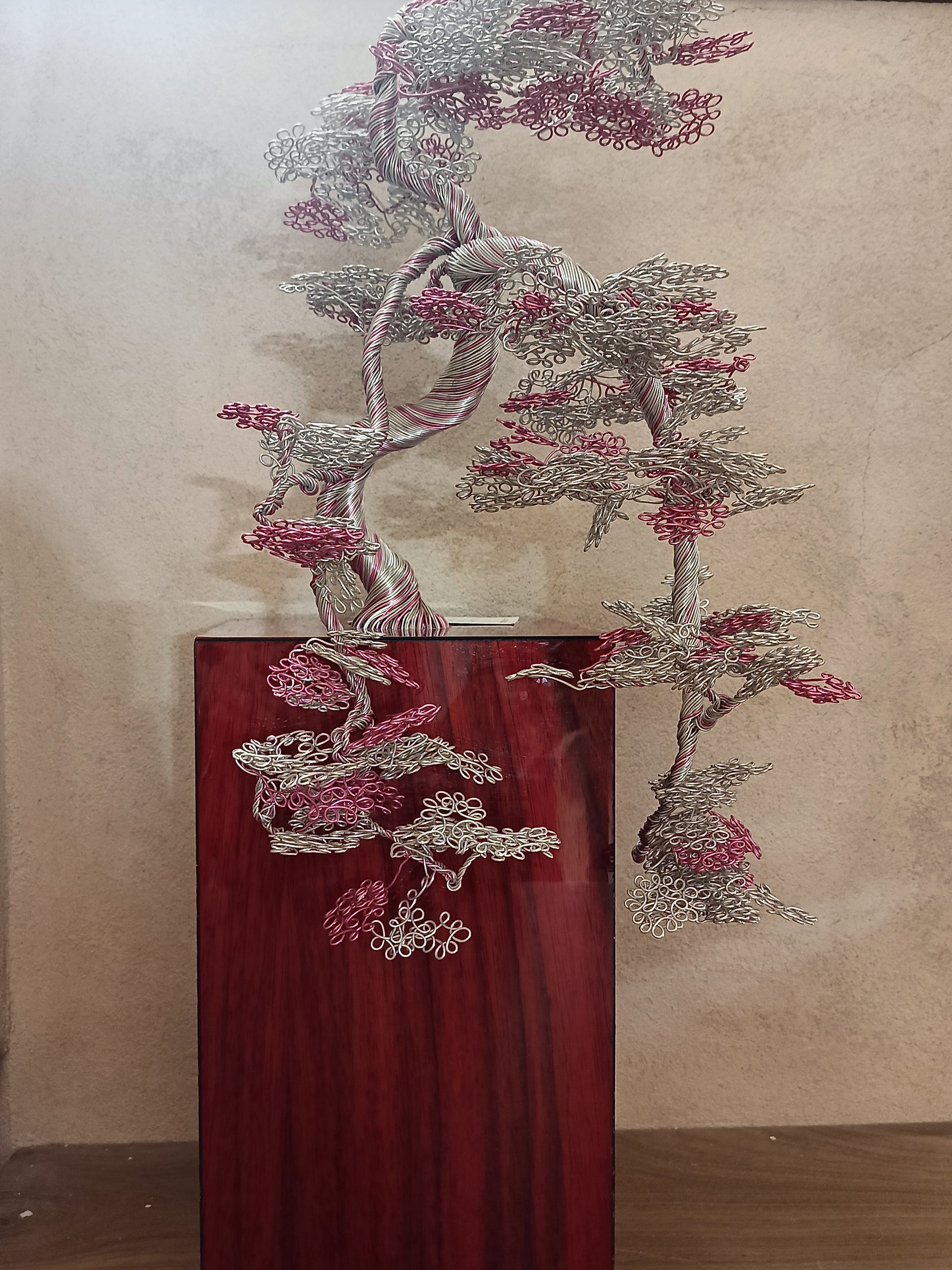 Scultura in legno e alluminio. Dimensioni dell'opera base 17.5cm x 17.5cm, altezza 60cm.